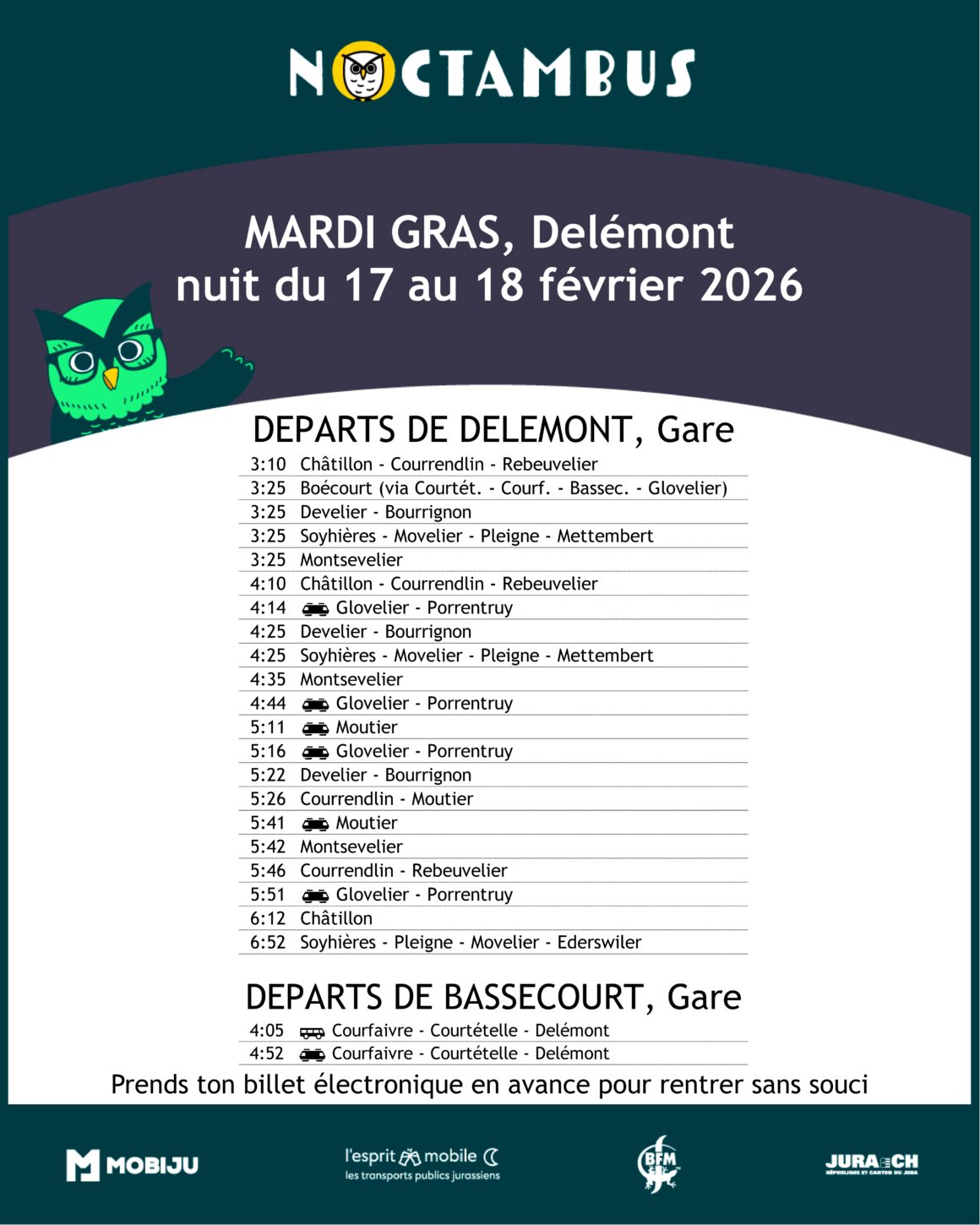 Dans la nuit du mardi au mercredi, des Noctambus circulent exceptionnellement pour vous ramener du Carnaval.